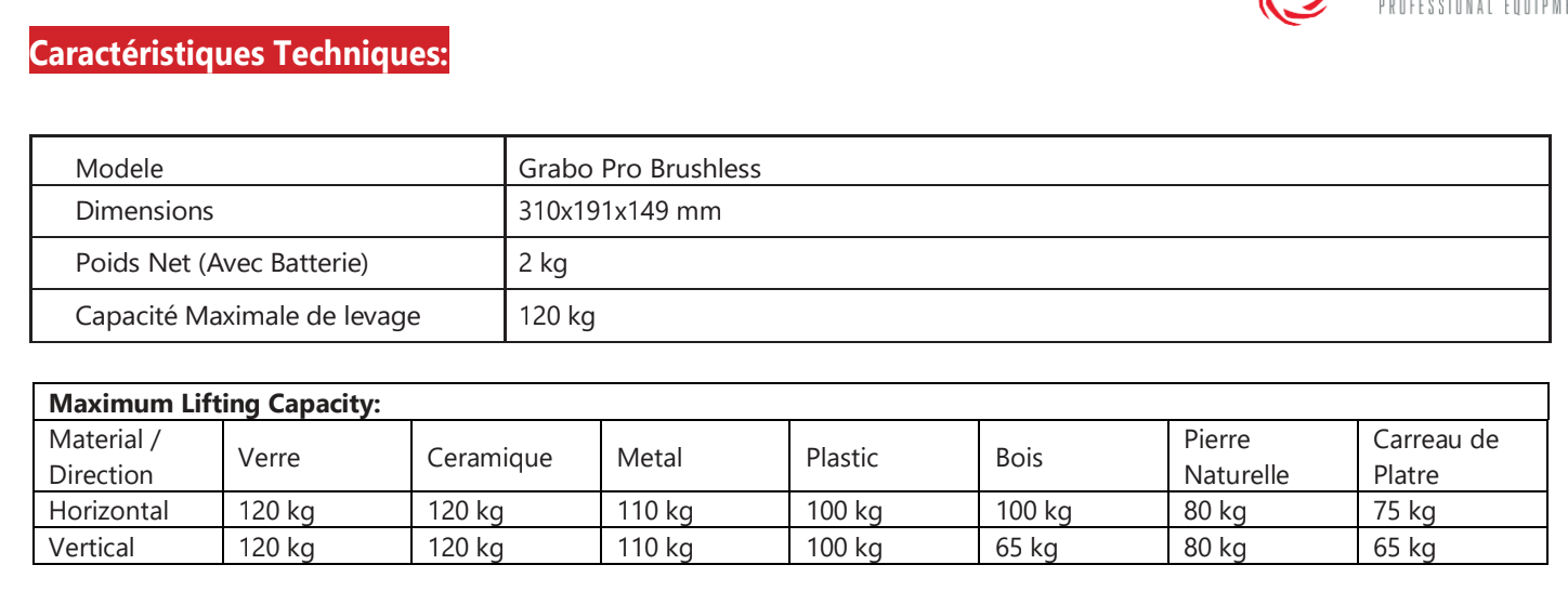 GRABO Pro Brushless SANS BATTERIE - Ventouse Électro-Portative Professionnelle